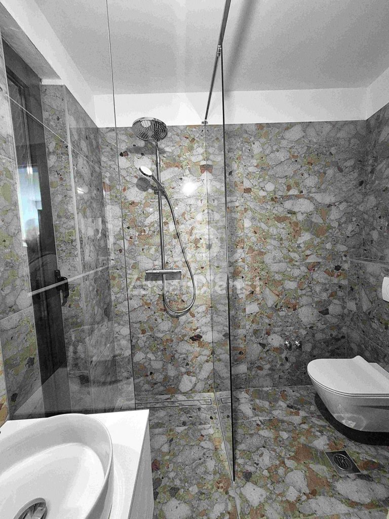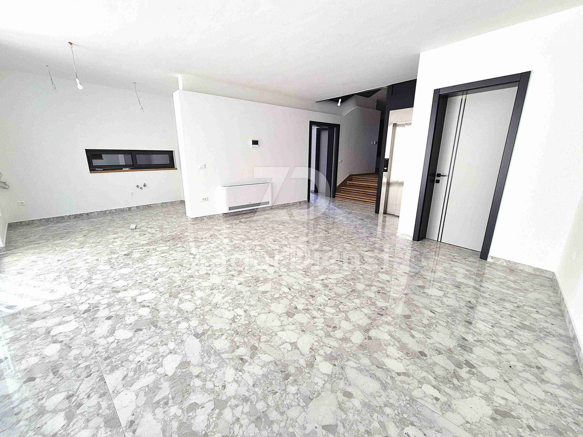 Vor dem Haus befindet sich ein privater Pool, ideal für eine morgendliche Erfrischung oder abendliche Entspannung bei Sonnenuntergang. Im Erdgeschoss befindet sich außerdem eine Küche mit Zugang zu einer kleineren, gemütlichen Terrasse, ideal für den Morgenkaffee oder ein leichtes Mittagessen an der frischen Luft. Es gibt außerdem eine funktionale Waschküche und ein elegantes Badezimmer – allesamt für maximalen Komfort.