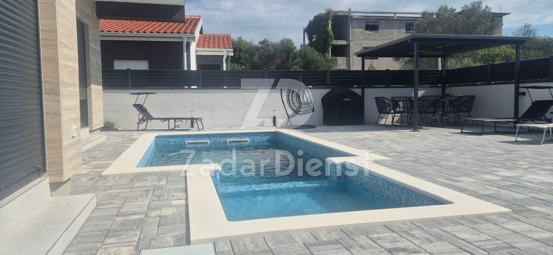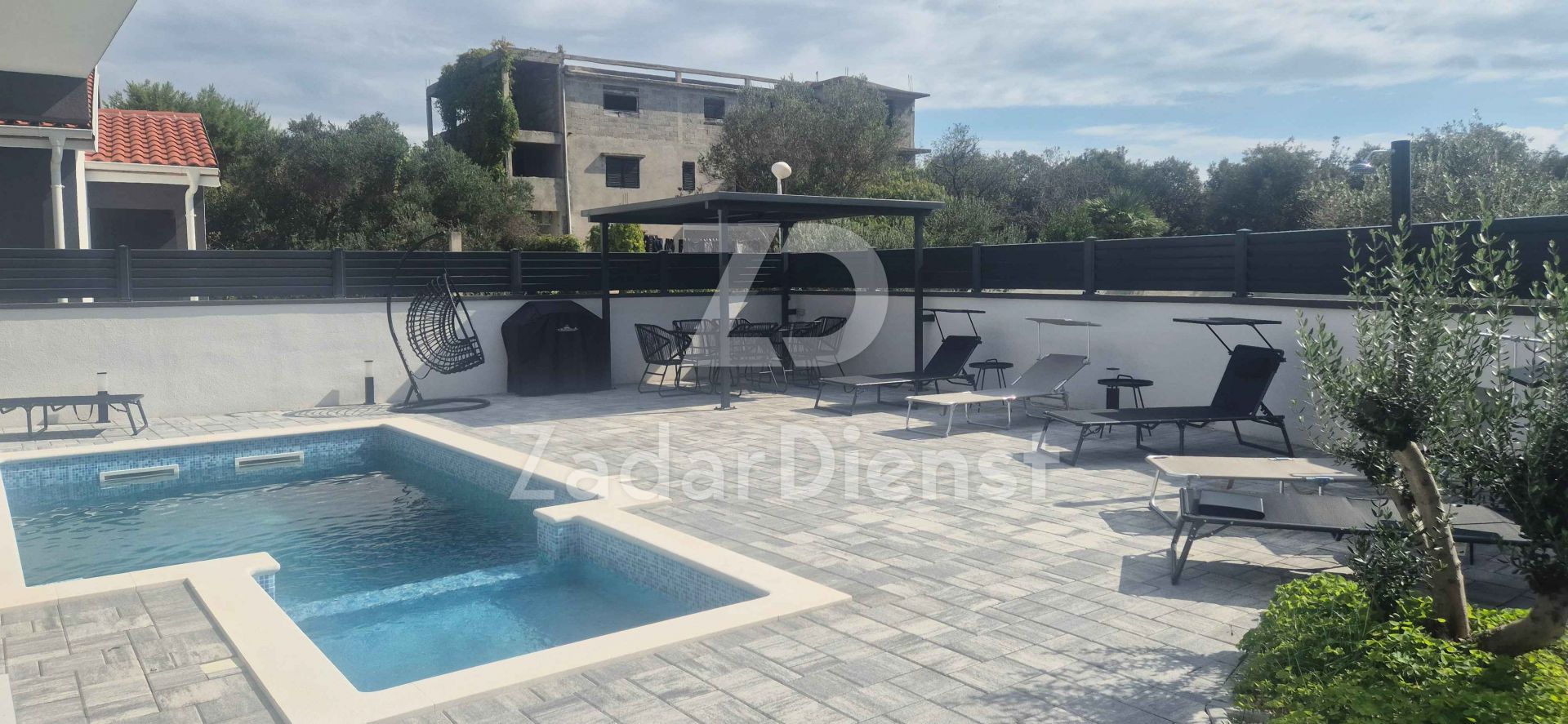 Na prostranoj okućnici se nalazi bazen sa sunčalištem i 3 parkirna mjesta.