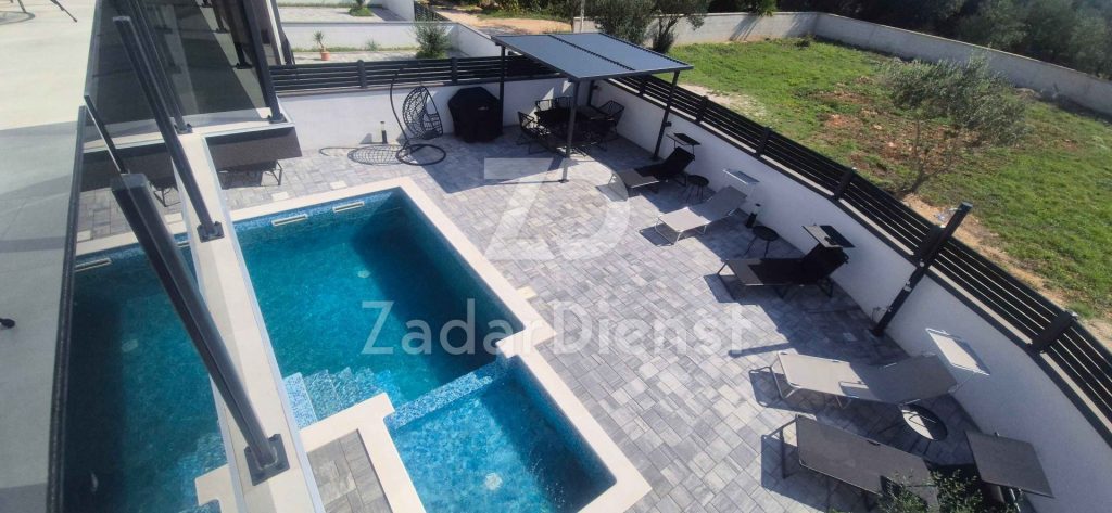 MODERNA KUĆA S BAZENOM I PROSTRANOM OKUĆNICOM – 600 METARA OD MORA – NOVOGRADNJA